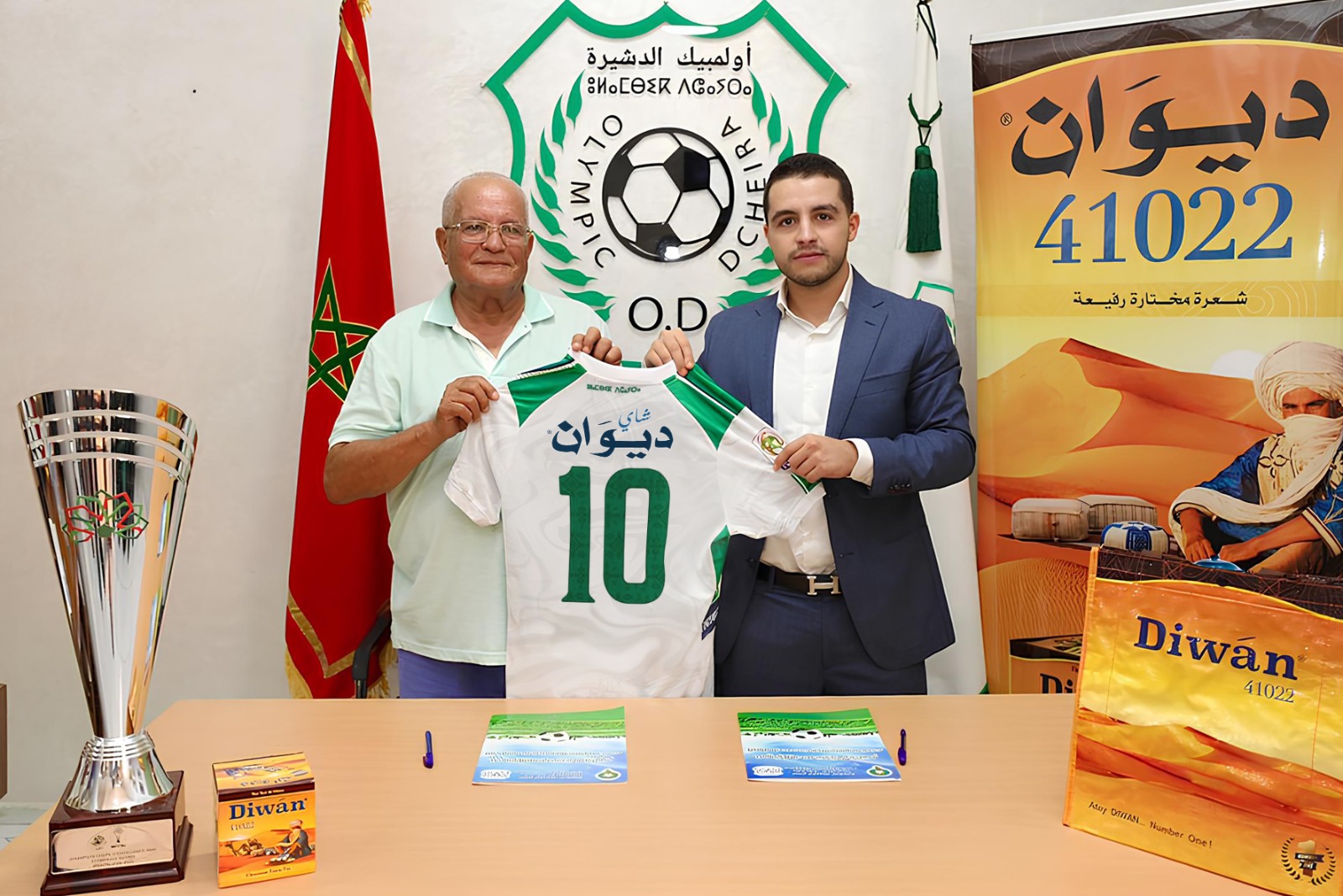 في خطوة جديدة تعكس الثقة المتزايدة في نادي أولمبيك دشيرة، الوافد الجديد على القسم الوطني الممتاز “إنوي”، تم يوم امس الإثنين 8 شتنبر 2025، بمقر النادي، توقيع عقد استشهار مع علامة “أتاي الديوان”، وذلك من أجل وضع شعارها على قميص الفريق خلال الموسم الكروي الجديد.