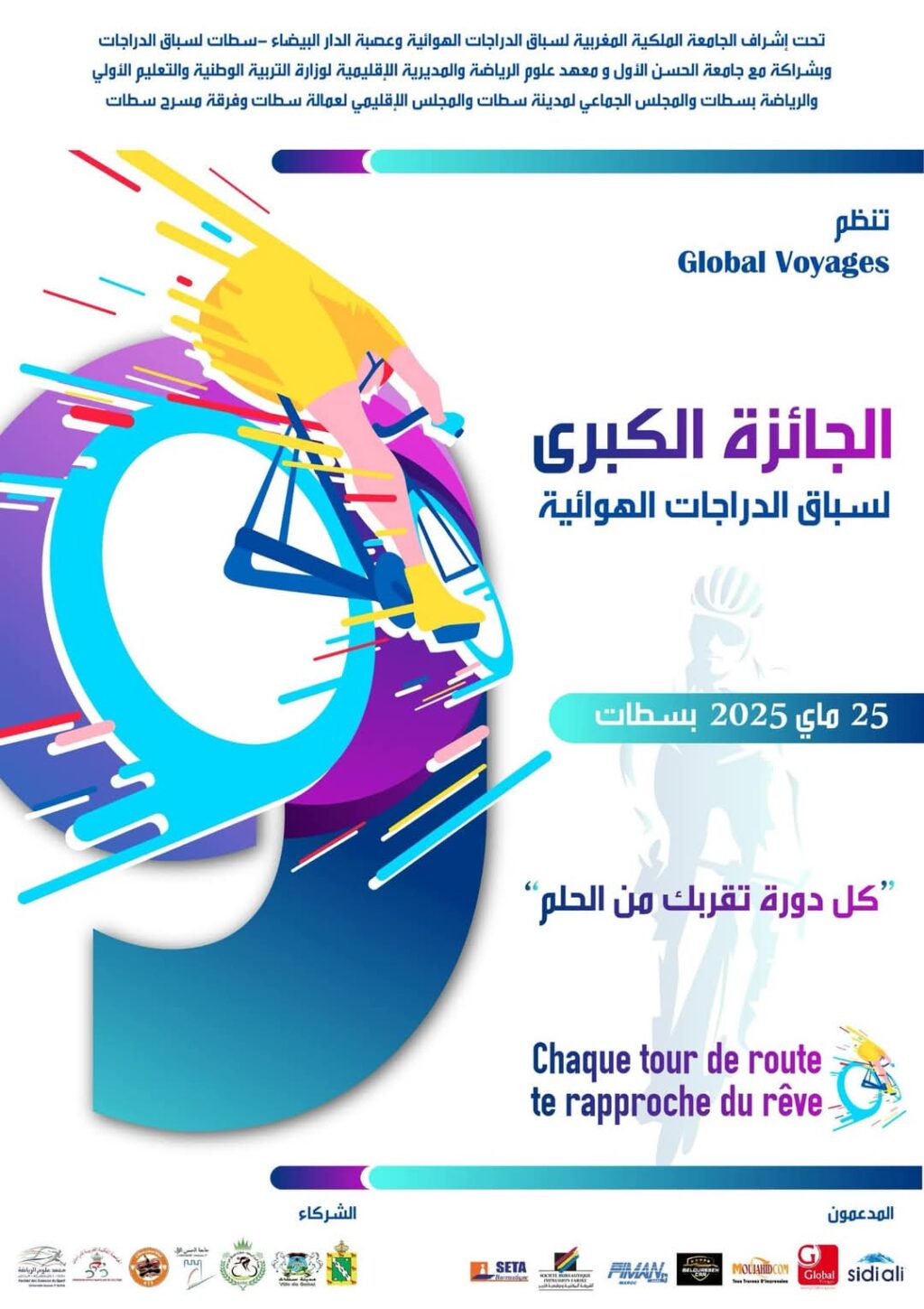 تنظم جمعية كلوبال للدراجات الهوائية بسطات فعاليات الدورة التاسعة للجائزة الكبرى للدراجات الهوائية وذلك يوم الأحد 25 ماي 2025، وهي تظاهرة رياضية وطنية متميزة تشهد مشاركة ما بين 35 و40 فريقاً من مختلف مناطق المملكة.