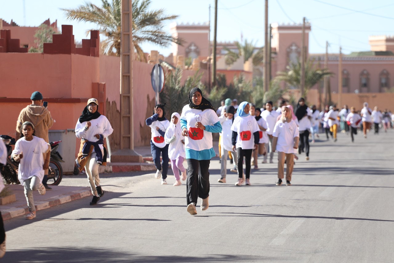 فبعد قيام المشاركات بحركات تسخينية، وعزف النشيد الوطني، أعطيت انطلاقة هذه التظاهرة النسوية بامتياز من ساحة الكورنيش من طرف الكاتب العام لعمالة إقليم زاكورة السيد أحمد فاضل ورئيسة الجامعة الملكية المغربية للرياضة للجميع السيدة نزهة بدوان، والتي شاركت فيها تلميذات وطالبات المؤسسات التعليمية وجمعيات رياضية ومن المجتمع المدني وأندية نسوية، إلى جانب نساء أخريات من مختلف الشرائح الاجتماعية بمن فيهن بعض الأجنبيات ، ما أضفى على هذه التظاهرة أجواء رياضية وحماسية ساهم فيها التنظيم المحكم للسباق(4 كلم ) الذي جرى في مدار مغلق، وتتبعه حشد غفير من المتفرجين من ساكنة المدينة والضواحي.