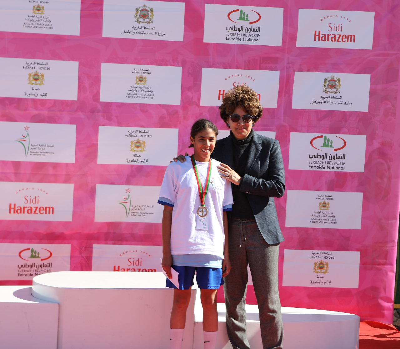 وفي فئة الشابات كان التفوق من نصيب التلميذة سمية آيت محماد ،التي لا يتجاوز عمرها ال 14 ربيعا، والتي تنتمي لفريق نادي أجيال درعة لكرة القدم النسوية.