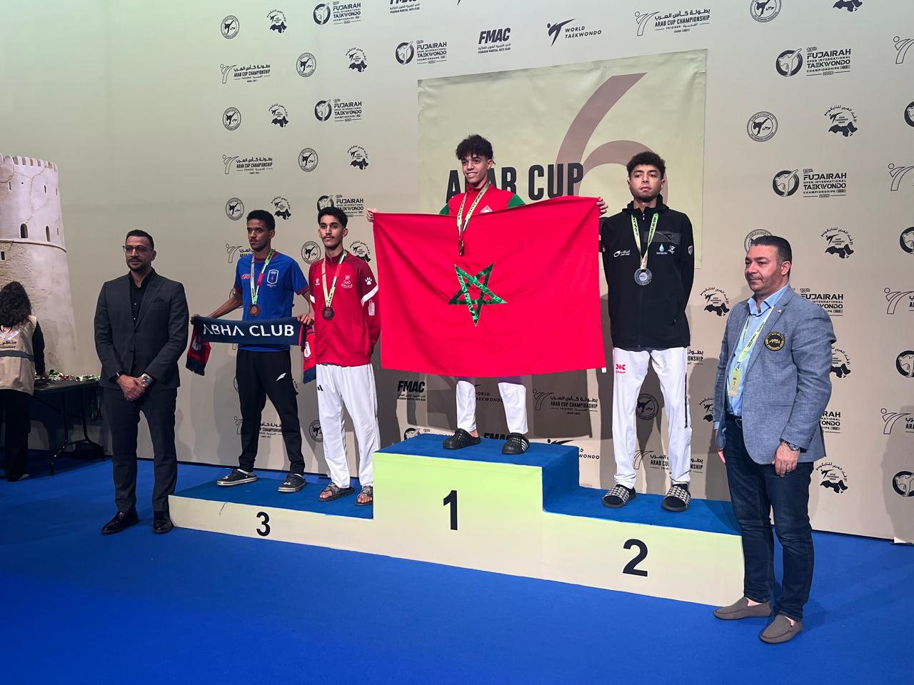 فاز المنتخب الوطني المغربي للتايكوندو صنف الكبار والكبيرات ب 12 ميدالية منها ثمانية ذهبيات و فضيتين و نحاسيتين خلال بطولة كاس العرب للتايكوندو في نسخته السادسة والتي جرت بمدينة الفجيرة بدولة الامارات العربية المتحدة يومي 6 و 7 فبراير 2026 بمشاركة 22 بلدا عربيا و1282 مشارك ومشاركة و59 حكما دوليا وقد حققت النخبة الوطنية الميداليات الذهبية بواسطة كل من البطلة امينة دحاوي في وزن اقل من 57 كلغ بعد اجتيازها الدور الاول بالتصنيف وانتصارها في دور الربع النهاىي على بطلة مصر حرف ب بجولتين لصفر وتغلبها على بطلة مصر حرف الف في دور النصف بجولتين لصفر فوزها في المباراة النهاىية على بطلة الاردن صاحبة نحاسية بطولة العالم بالصين بجولتين لصفر .والبطلة حجيبة حركات في وزن اكثر من 73 كلغ بعد انتصارها في دور الربع على بطلة تونس بجزلتين لصفر وفي دور النصف على بطلة مصر حرف ب بجولتين لصفر وفي المباراة النهاىية على بطلة مصر حرف الف بجولتين لصفر .والبطلة فرح التوزاني في وزن اقل من 46 كلغ بعد ان اجتازت الدور الاول بواسطة التصنيف وتغلبها في دور الربع النهاىي على بطلة مصر بجولتين لصفر وانتصارها في دور النصف على بطلة الوداد الرياضي بجولتين لصفر وفي المباراة النهاىية على بطلة من المغرب الوداد الرياضي بجولتين لصفر لتفوز بذهبية وزن اقل من 46 كلغ . والبطلة نزهة العسال في وزن اقل من 49 كلغ بعد اجتيازها للدور الاول بالتصنيف وانتصارها على بطلة عمان بجولتين لصفر في الدور الربع النهاىي وتغلبها على بطلة لبنان في دور النصف بجولتين لصفر وانتصارها على بطلة مصر في الدور النهاىي بجولتين لصفر لتفوز بذهبية وزن اقل من 49 كلغ .وقد فازت البطلة اميمة البوشتي بذهبية وزن اقل من 53 كلغ بعد اجتيازها للدور الاول بالتصنيف وانتصارها على بطلة الامارات في دور الربع بجولتين لصفر وفوزها على بطلة مصر في دور النصف بجولتين لصفر وتغلبها على بطلة مصر حرف الف في الدور النهاىي بجولتين لصفر .كما حدت البطلة ندى لعرج حدو صديقاتها بفوزها بذهبية وزن اقل من 62 كلغ بعد اجتيازها للدور الاول بواسطة التصنيف وانتصارها على بطلة مصر بجولتين لصفر في دور النصف النهاىي وفوزها على بطلة قطر في الدور النهاىي بجولتين لصفر.