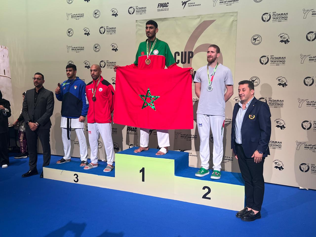 وفي دور النصف على بطل الاردن ب بجولتين لصفر وعل بطل الاردن حرف الف صاحب فضية اولمبياد طوكيو بجولتين لجولة واحدة .جدير بالذكر ان الميداليتين الفضيتين كانتا من نصيب البطلة فاطمة الزهراء النمس في وزن اقل من 67 كلغ بعد تغلبها في الدور الاول على بطلة تونس بجولتين لصفر وفي دور الربع على بطلة الاردن بجولتين لصفر وفي دور النصف على بطلة مصر حرف ب بجولتين لصفر وانهزمت في الدور النهاىي امام بطلة مصر بجولتين لصفر .والبطل حميد العبدوني في وزن اقل من 74 كلغ بعد فوزه في الدور الاول على بطل المملكة العربية السعودية بجولتين لصفر وفي الدور الثاني على بطل العراق بجولتين لصفر وفي دور الربع على بطل المغرب النور بنسليمان بجولتين لصفر وانهزم في النهاية امام بطل الاردن بجولتين لصفر . فيحين تمكنت البطلة مريم النمس من تحقيق الميدالية النحاسية في وزن اقل من 53 كلغ بعد تغلبها على بطلة المملكة العربية السعودية بجولتين لصفر في الدور الاول وانتصارها في دور الربع على بطلة المغرب الوداد بجولتين لصفر . محمد امين الظاهيري في وزن اقل من 68 كلغ بعد انتصاره في الدور الاول على المملكة العربية السعودية بجولتين لصفر وفي دور الربع على بطل فلسطين بجولتين لصفر وانهزم في دور النصف امام بطل الاردن بجولتين لصفر .