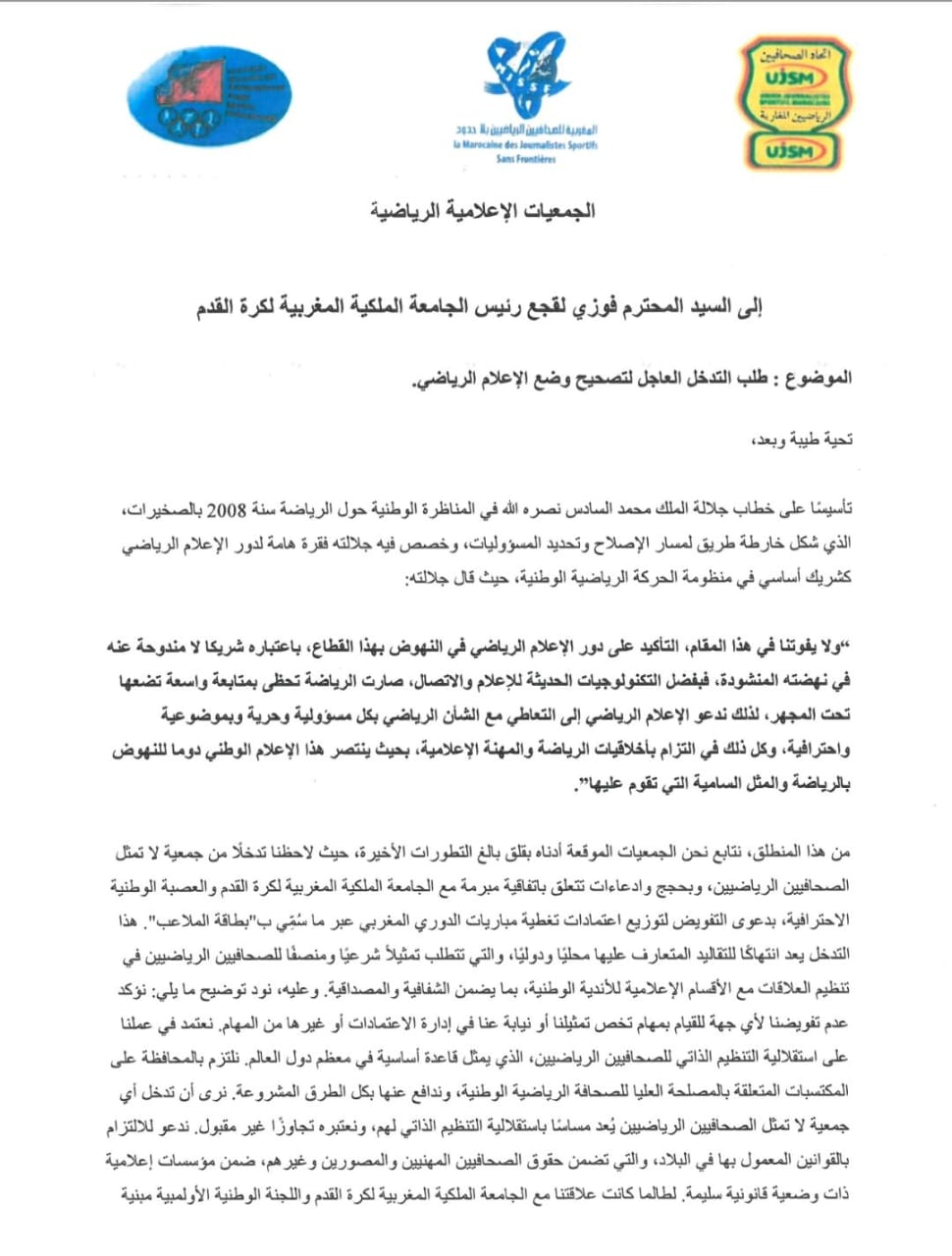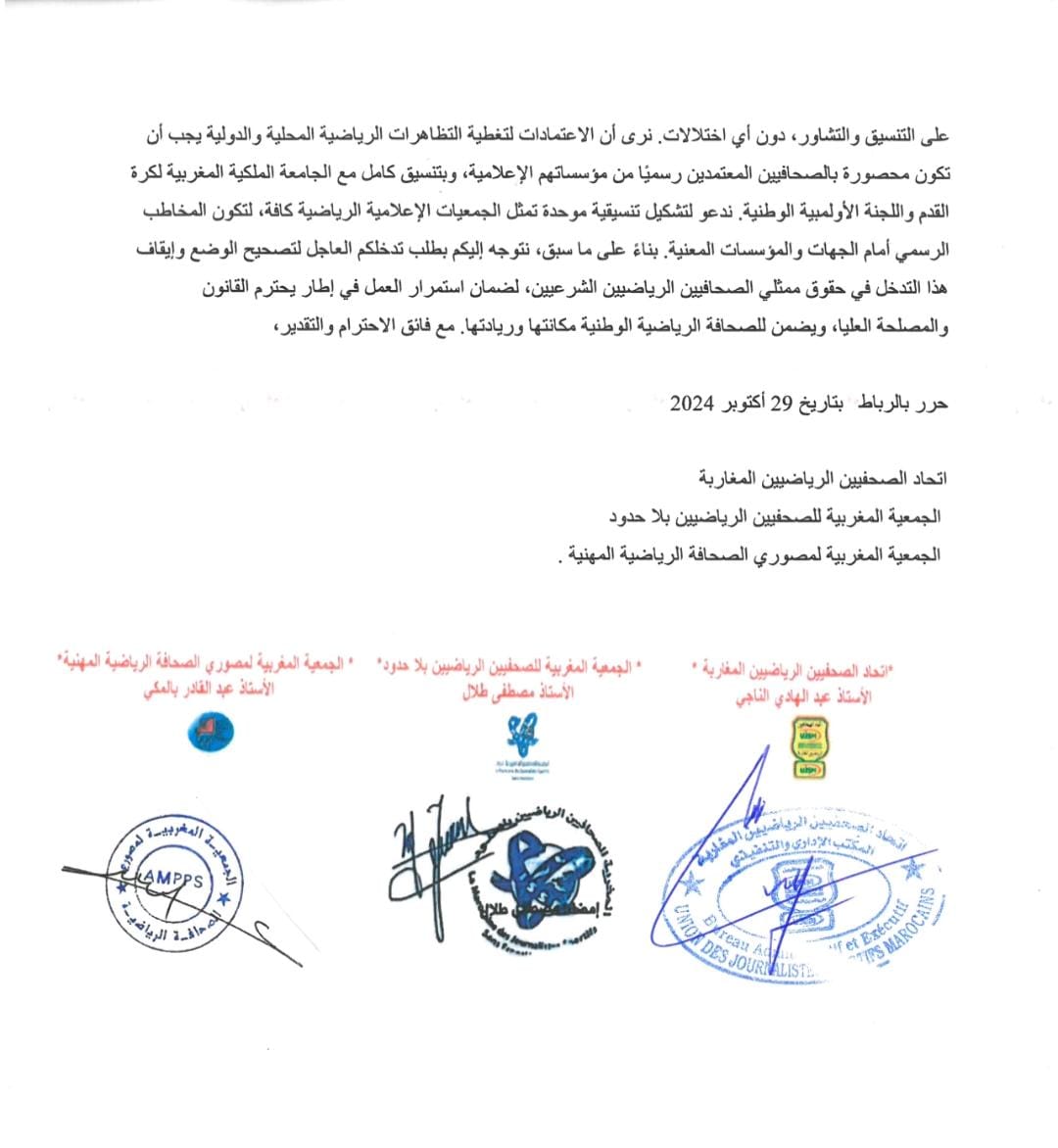 بلاغ للجمعيات الرياضيةالثلاث : الاتحاد -بلاحدود-المصورين