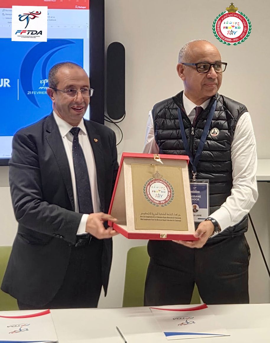 على هامش إقامة بطولة فرنسا للتايكوندو للكبار بمدينة ليون الفرنسية ، وقع كلا من السيد إدريس الهلالي رئيس الجامعة الملكية المغربية للتايكوندو والسيد حسن صادوق رئيس الاتحاد الفرنسي يوم 17 فبراير 2026 على اتفاقية شراكة ثنائية بين الجامعتين تؤكد متانة العلاقات الثنائية، وتؤسس لمرحلة جديدة من التعاون الاستراتيجي في مجال تطوير رياضة التايكوندو بالبلدين.