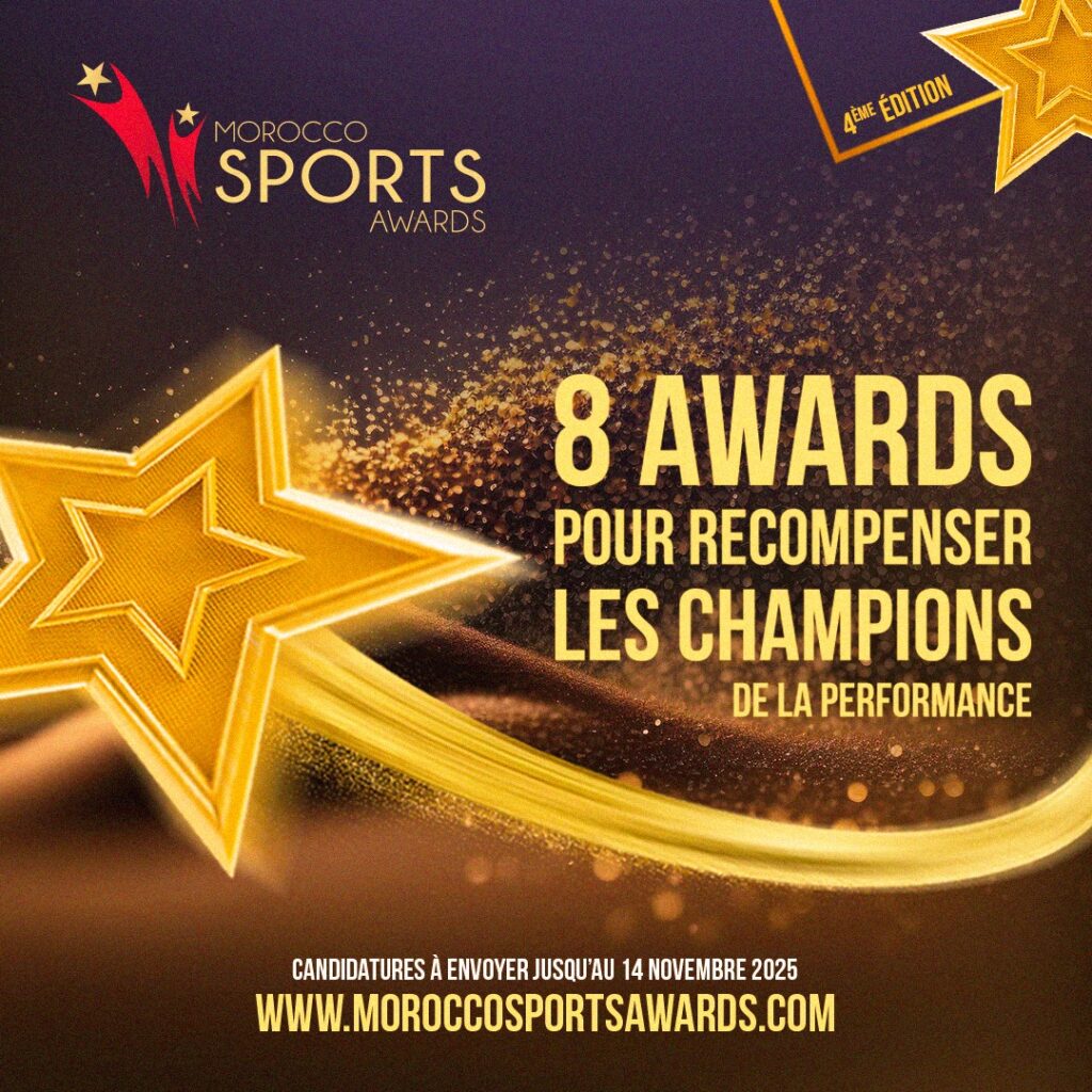 ويمكن تقديم طلبات الترشح إلى المنظمين إلى غاية 14 نونبر 2025 عند الساعة 23:59 عبر المنصة: www.moroccosportsawards.com.