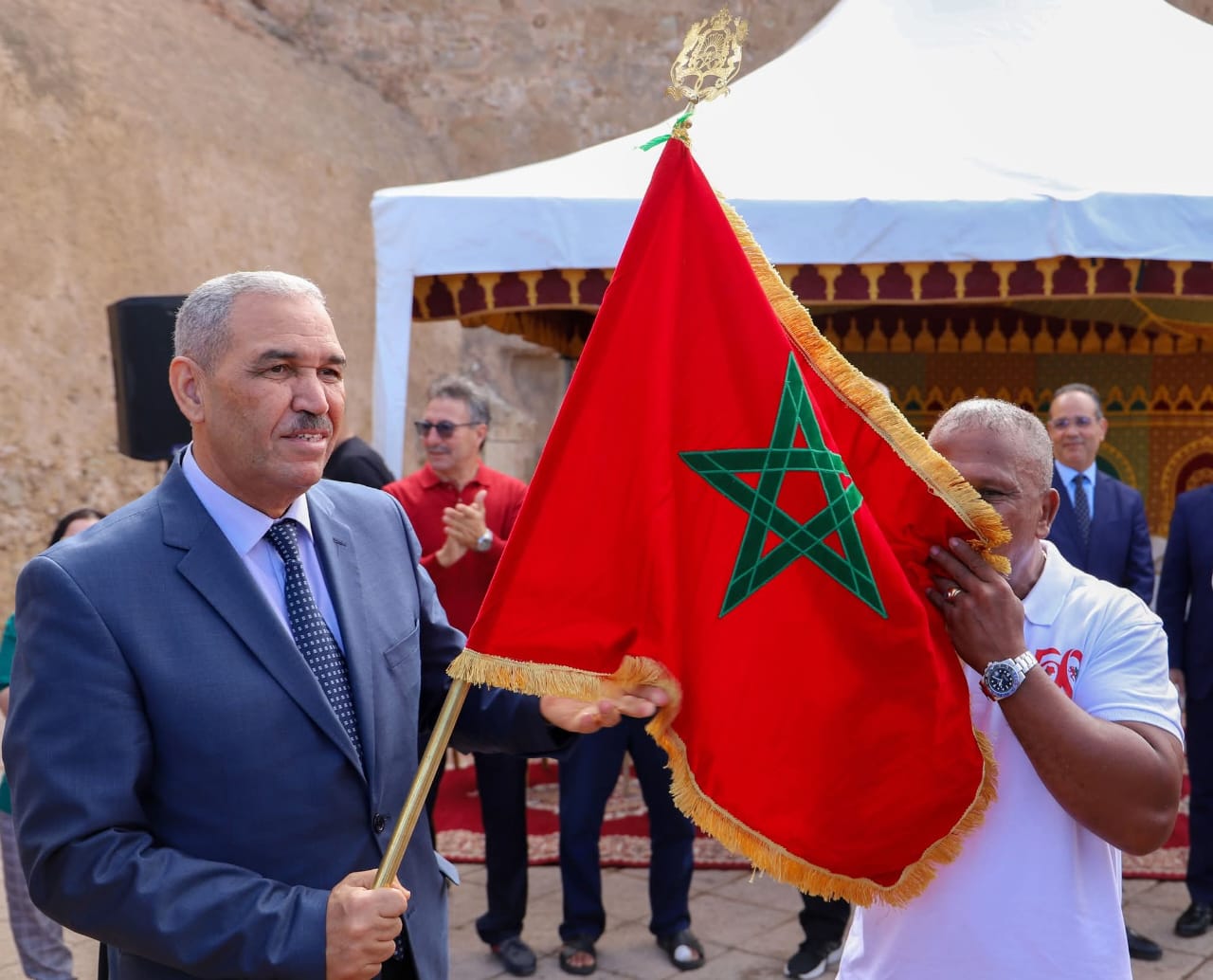 أشرف عامل إقليم الجدبدة، السيد امحمد العطفاي.، اليوم الثلاثاء، بمدخل الحي البرتغالي بمدينة الجديدة على انطلاقة المرحلة الخامسة من ” سباق التناوب الرمزي المسيرة الخضراء”، المنظم تحت الرعاية السامية لصاحب الجلالة الملك محمد السادس ، حفظه الله، من 15 أكتوبر الجاري إلى 6 نونبر المقبل، تخليدا لمرور نصف قرن على المسيرة الخضراء المظفرة.