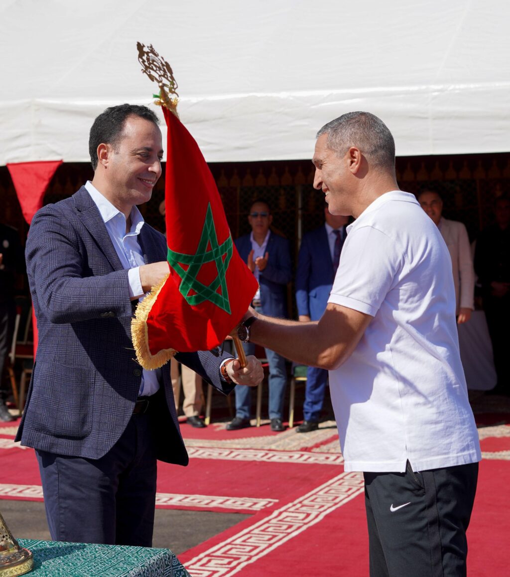 ومن المقرر أن يسلم رشيد البصير بدوره يوم غد الإثنين بطانطان، العلم الوطني للبطلة العالمية والأولمبية ( 400 حواجز) ، السيدة نزهة بدوان، رئيسة الجامعة
