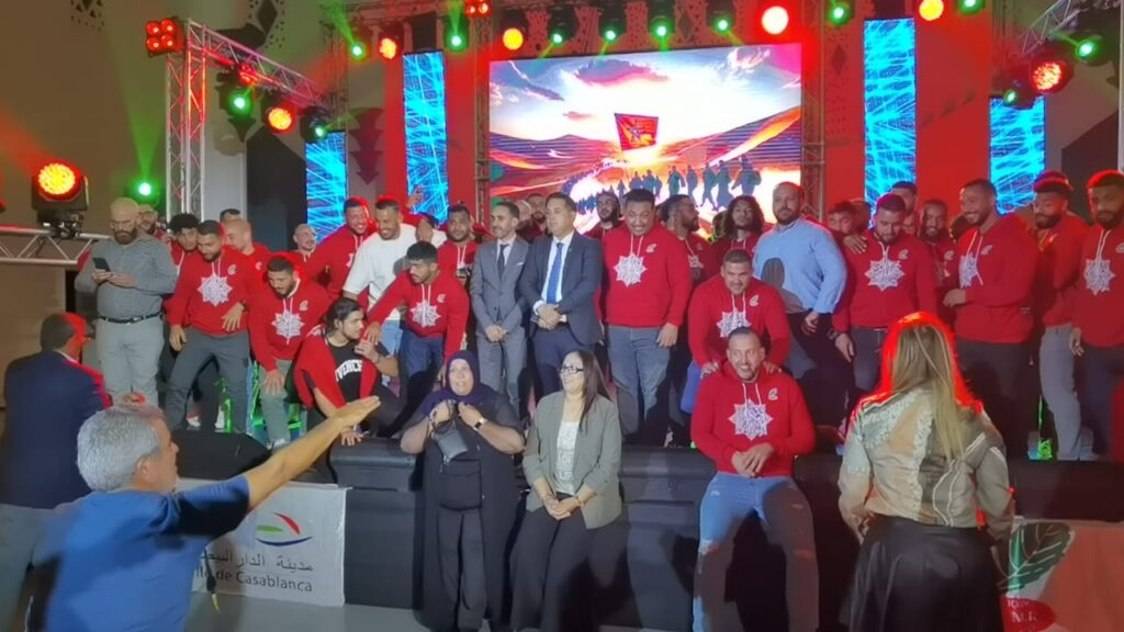 في إطار احتفالات الشعب المغربي بالذكرى ال49 للمسيرة الخضراء المظفرة والذكرى الـ 69 لعيد الاستقلال المجيد، نظم مجلس مدينة الدار البيضاء ،بتعاون مع الجامعة الملكية المغربية للعبة، أمس الخميس، حفل استقبال على شرف منتخبات الكاميرون ، مدغشر ، بوتسوانا والمغرب للريكبي المشاركة في إقصائيات كأس إفريقيا عن المجموعة “ب” المقامة بالدارالبيضاء من 18 إلى غاية 24 نونبر الجاري على أرضية ملعب الأولمبيك البيضاوي.
