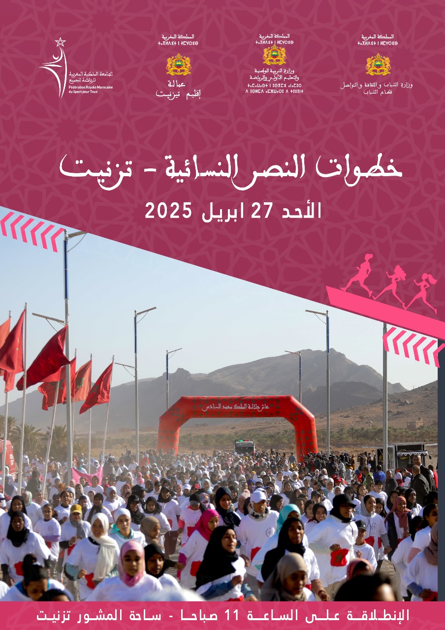 تحتضن مدينة تزنيت يوم الأحد المقبل (27 أبريل 2025) المحطة الخامسة من “خطوات النصر النسائية” برسم الموسم الرياضي 2024-2025، التي تنظمها الجامعة الملكية المغربية للرياضة للجميع، بشراكة مع عمالة إقليم تزنيت، بمشاركة فتيات وشابات ونساء من مختلف الشرائح الاجتماعية تحت شعار ” نجري علاش قديت “.
