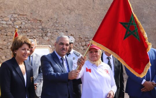 شريفة مسكاوي تحمل العلم الوطتي في المرحلة الخامسة من” سباق التناوب الرمزي المسيرة الخضراء” الرابطة بين الجديدة وأسفي