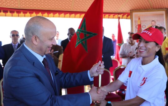 فاطمة الزهراء كردادي حاملة العلم الوطني في المرحلة السادسة من” سباق التناوب الرمزي المسيرة الخضراء” بين آسفي والصويرة