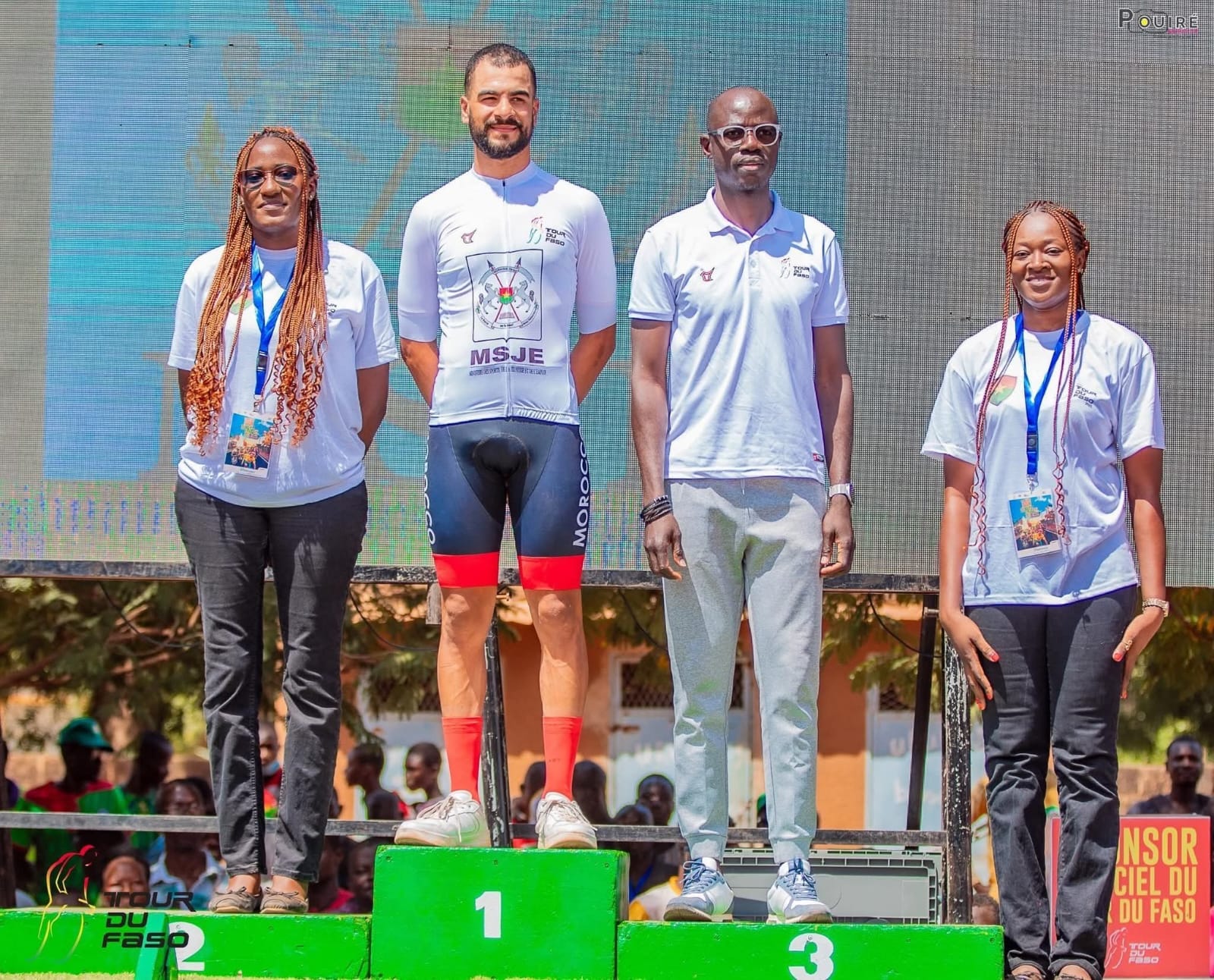 Driss Alouani ,vainqueur l’année dernière de la 8è étape, a endossé à la fois le maillot jaune et le maillot vert dédié à la combativité.Le Burkinabè Souleymane KONE prend une belle 2e place, tandis que le Belge Smet Yaxano complète le podium .Plusieurs distinctions ont été décernées lors de cette première étape, saluant la performance et la sportivité des coureurs engagés.La2e étape, est prévue le samedi 25 octobre 2025, entre Koudougou et Boromo, longue de 156,20km pour la suite de cette grande fête du cyclisme africain .